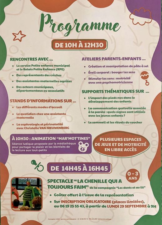 Samedi 11 et dimanche 10 octobre , à la salle des fêtes, rencontres, animations, stands d’informations, espaces de jeux, spectacles et goûter vous seront proposés.